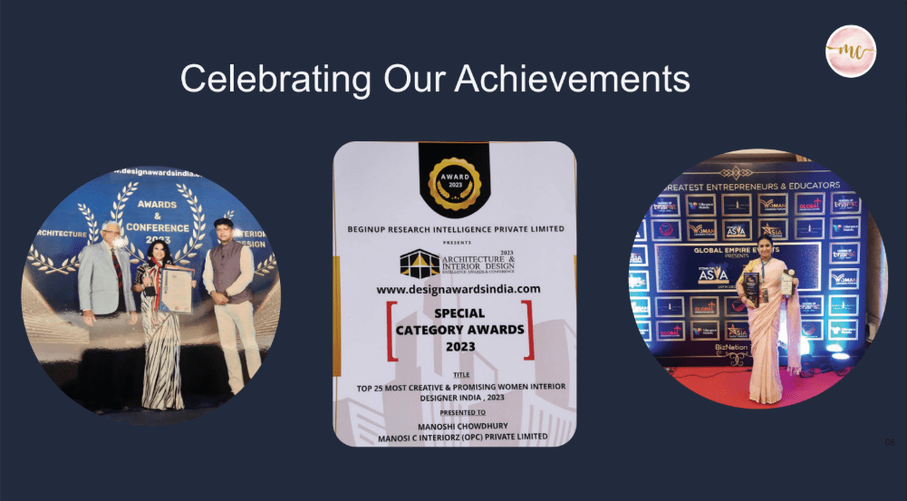 Founded and led by award-winning interior stylist Manoshi Chowdhury, Manosi C Interiorz is an acclaimed interior design and styling company. Our dedicated team, including renowned designers and architects, takes on projects from concept to completion.
